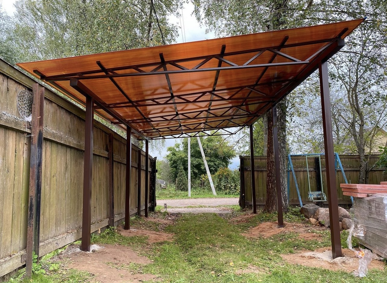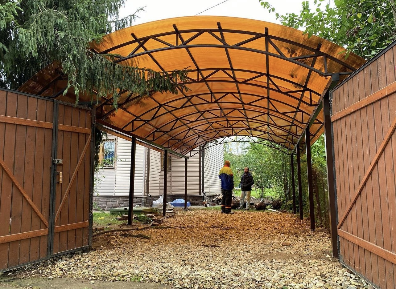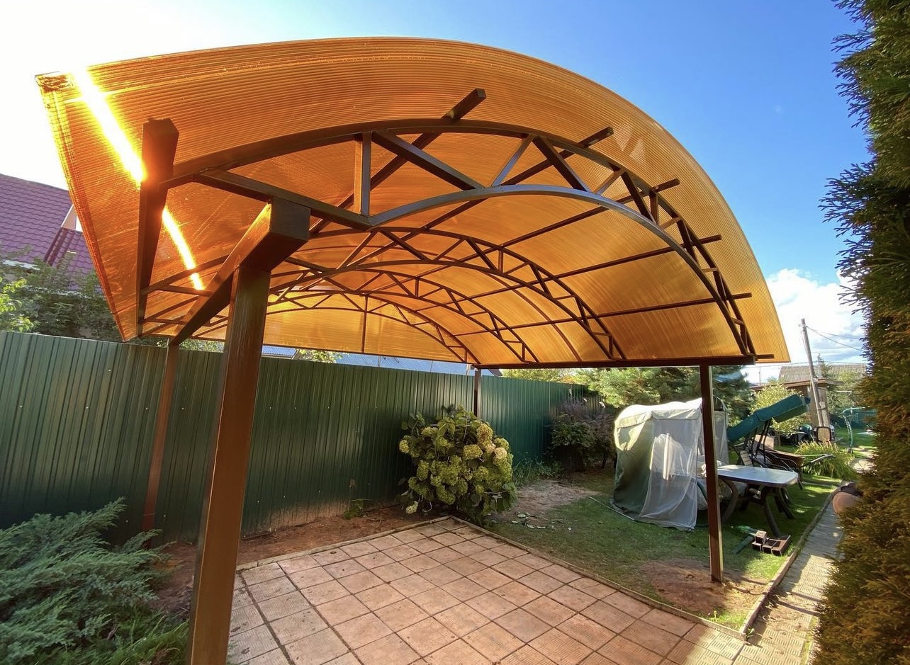 Наши навесы из поликарбоната в Бутово и Московской области используются для оснащения: